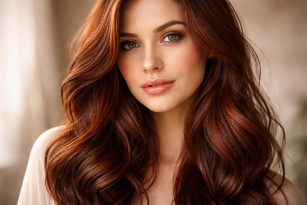 Quant à l’ acajou cuivré, il représente la fusion parfaite entre le brun et le rouge. Cette nuance est idéale pour celles qui souhaitent introduire des touches de couleur plus vives sans aller trop loin. Cela signifie qu’elle peut convenir à presque tous les types de cheveux, offrant un éclat chaleureux qui fait ressortir la vibrance de la chevelure.