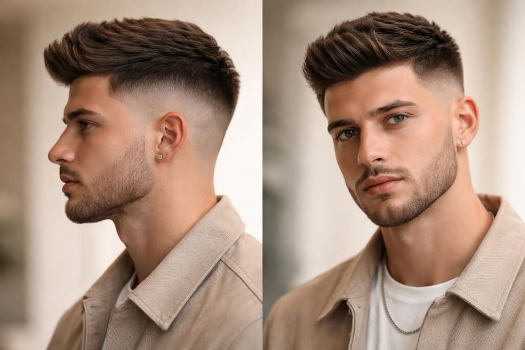 - Le dégradé slick back : ce style associe élégance et modernité, avec des cheveux coiffés derrière. Idéal pour un look soigné.