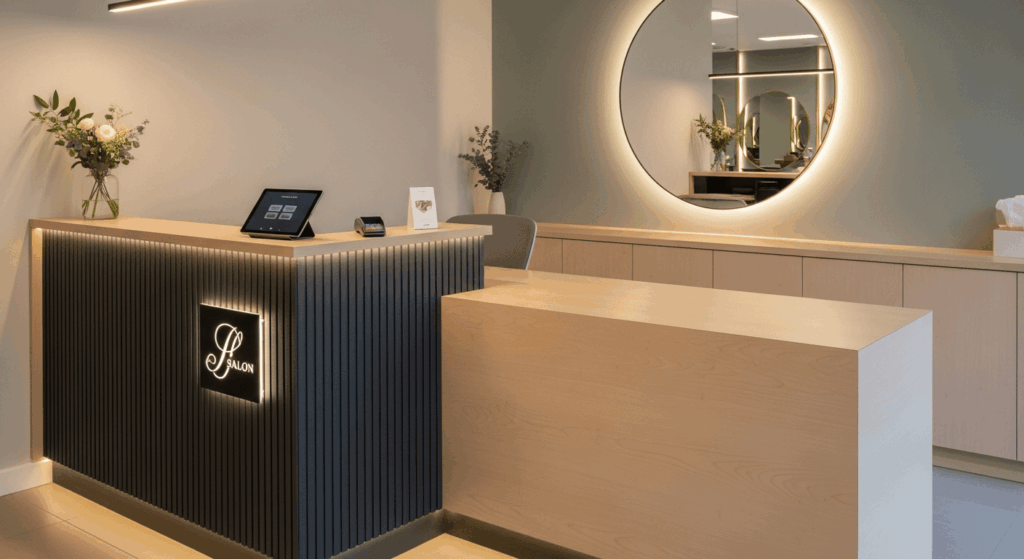 Enfin, même avec une banque d’accueil parfaitement installée et équipée, c’est l’accueil humain qui engage les clients et construit leur fidélité. La formation du personnel pour optimiser chaque interaction utilise le mobilier salon coiffure à son maximum et garantit une expérience client harmonieuse. Enseigner aux réceptionnistes à anticiper les besoins, à rester cordiaux et à gérer efficacement toute situation imprévue est un atout stratégique.